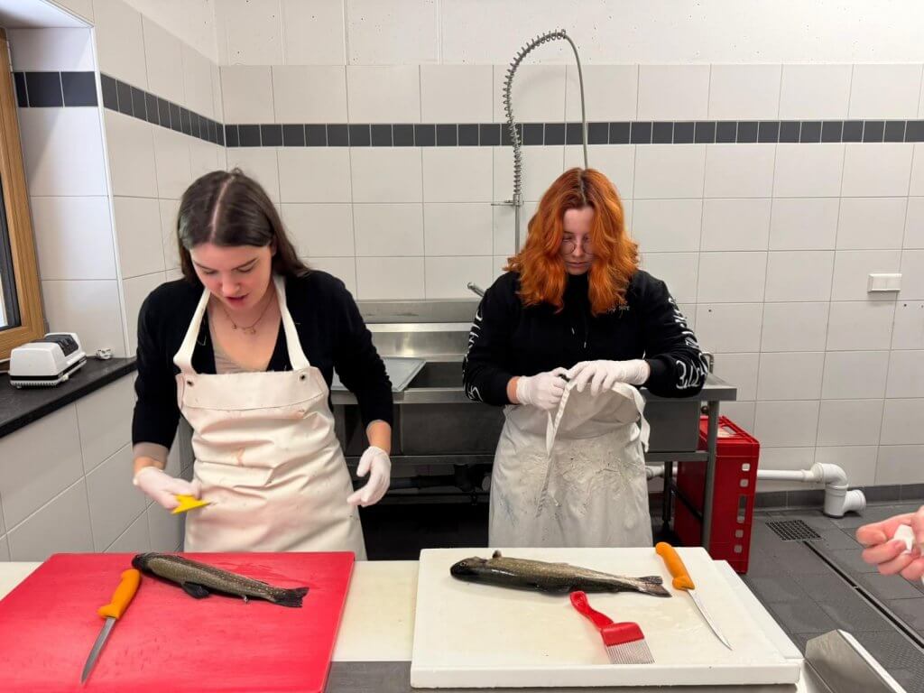 Mercredi, les élèves ont pu découvrir un élevage d’ombles chevaliers à Gunzesried. Après la visite des bassins et du fumoir, ils ont pu s’exercer à la découpe des filets, accompagnés par notre guide. Pour finir, ils ont pu déguster le poisson sous toutes ses formes.